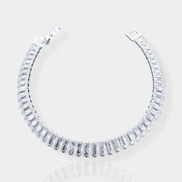 La Pulsera Tennis Rectángulos con circones cristalinos combina elegancia, brillo y sofisticación atemporal. Una pieza refinada que aporta presencia sutil y distinción a cualquier look.